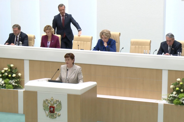 Председатель Законодательной думы Томской области Оксана Козловская на пленарном заседании Совета Федерации в рамках «Часа субъекта» рассказала о правовом обеспечении приоритетов развития региона в современных условиях,
