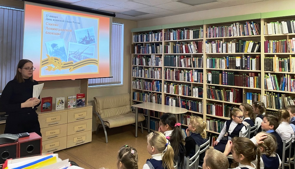 24 января для учащихся школы №2 в ЦОД библиотеки « Фламинго » к годовщине полного снятия блокады Ленинграда прошел информационный час «Дорогой жизни». В ходе мероприятия ребята узнали о трагических и героических страницах блокадного Ленинграда, о судьбах героев войны, детях, помогавших спасать блокадный город, посмотрели видеоролик «Дети блокадного Ленинграда».