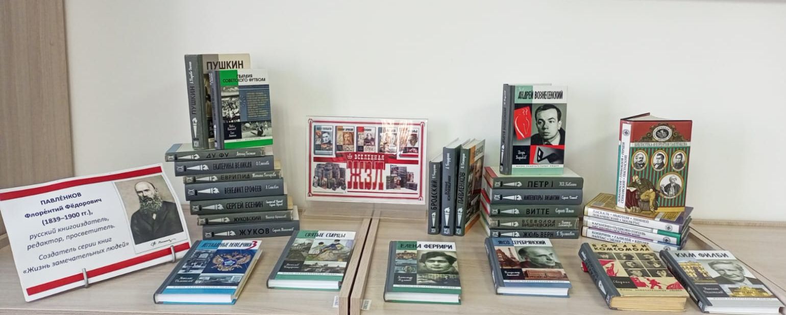 Первая книга серии "ЖЗЛ" вышла в Санкт-Петербурге ориентировочно в конце апреля — начале мая 1890 года. Ее автором стал журналист Александр Алексеевич Быков. Серия выпускалась до 1924 года издательством Флорентия Федоровича Павленкова, причём с 1915 года осуществлялись только переиздания уже вышедших ранее книг, но в 1933 году по инициативе Максима Горького выпуск был возобновлен "Журнально-газетным объединением" . К 90-летию данного события в зале информационных технологий подготовлена книжная выставка "Вселенная ЖЗЛ" . На выставке представлены биографии философов и учёных, основателей религий и святых, музыкантов и полководцев, писателей и поэтов, исторических личностей и легендарных разведчиков.