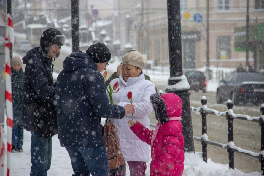 Томские и колпашевские коммунисты вышли на улицы своих городов, чтобы поздравить женщин с 8 марта. Непогода не помешала распространению тюльпанов, шоколада и хорошего настроения!