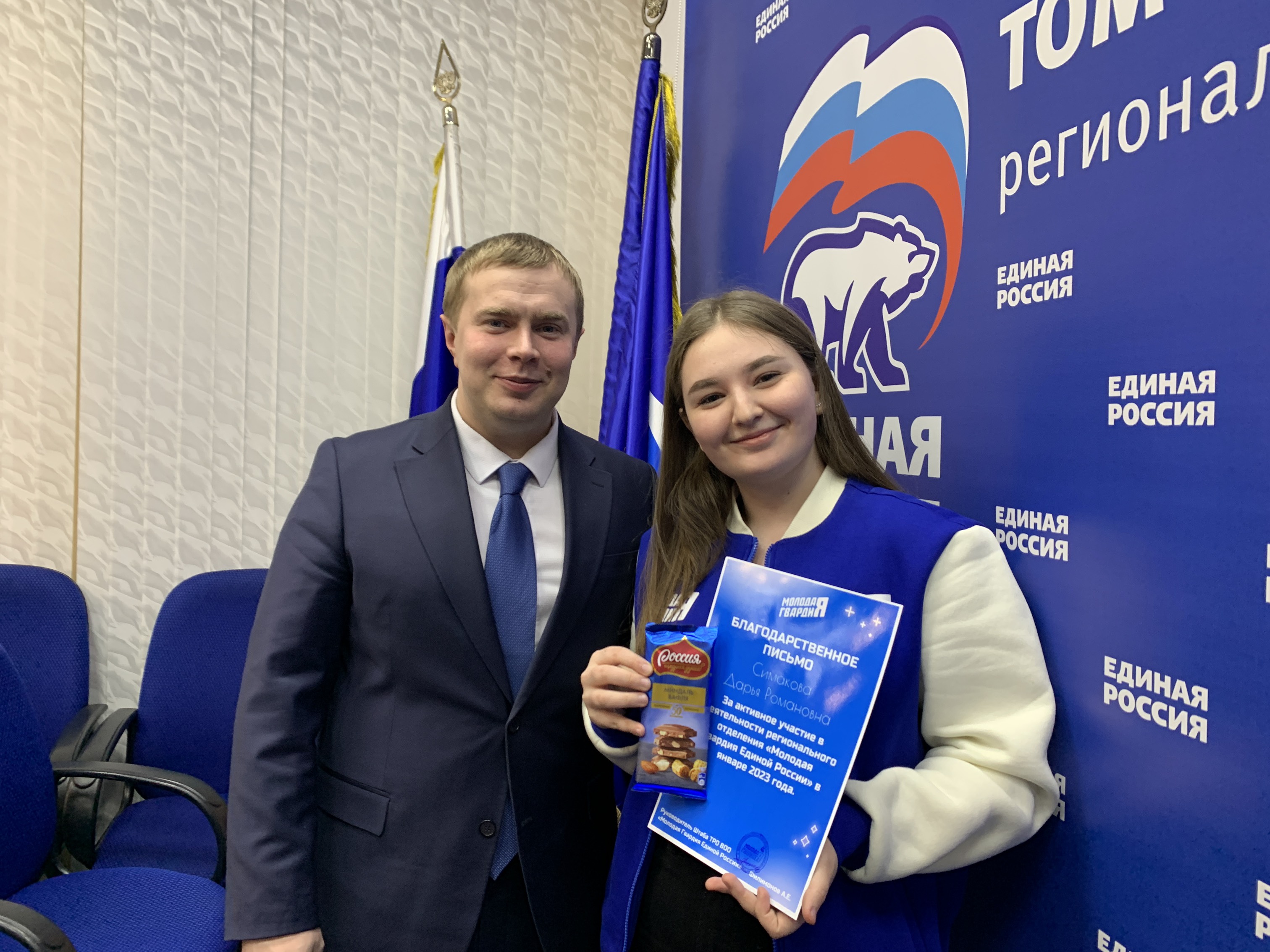 На базе Депутатского центра Единой России Томской области прошло награждение молодогвардейцев в честь Дня Российского студенчества, а также торжественное подведение итогов работы в январе 2023 года.