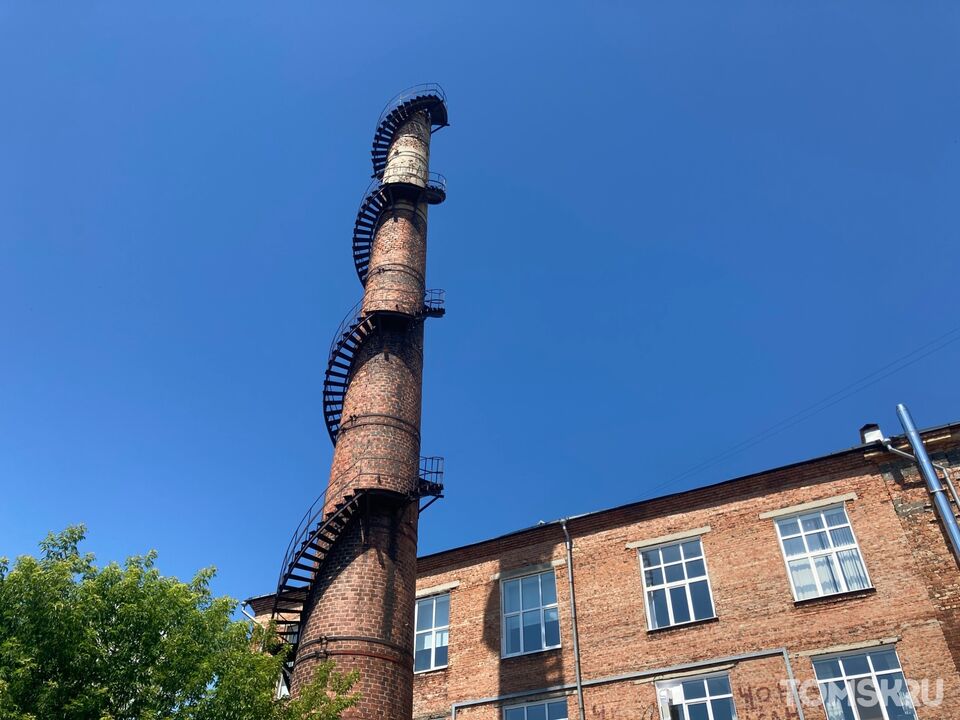 32-метровая кирпичная труба, обвитая винтовой лестницей. Это необычное сооружение может увидеть каждый, кто решит прогуляться между главным и четверным корпусом Томского политехнического университета, во дворике исторического пятого корпуса, спроектированного архитектором Фортунатом Фердинандовичем Гутом в 1902-1904 годах.