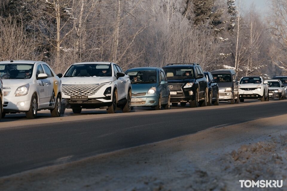 Огромные пробки образовались на въезде в Томск