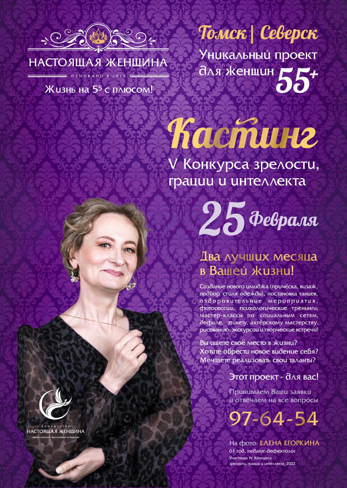 25 февраля пройдет отбор на участие в V региональном конкурсе зрелости, грации и интеллекта для женщин 55+ «Настоящая Женщина».