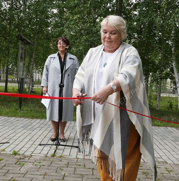 Наибольшее число работ представили учащийся В.Тазов и преподаватель истории искусств и художественных дисциплин С.М.Иванова. Она и получила право разрезать символическую ленточку и открыть выставку.