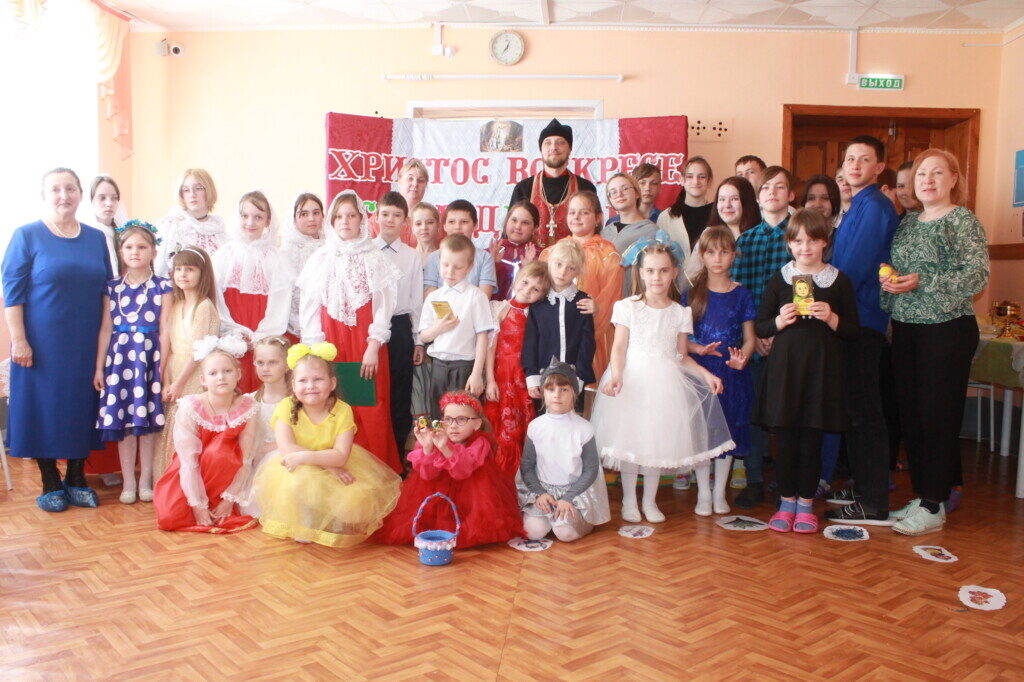 Воскресная школа Тогурского храма поздравила с Пасхой Христовой детей и сотрудников Центра помощи помощи детям, оставшимся без попечения родителей, имени М.И.Никульшина