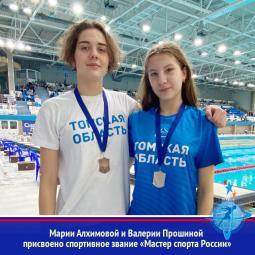 Приказом Министерства спорта РФ № 183 нг от 12 декабря 2022 года звание "Мастер спорта России" присвоено томичам: Алхимовой Марии Васильевне, Горелову Ивану Сергеевичу, Тимченко Екатерине Богдановне,