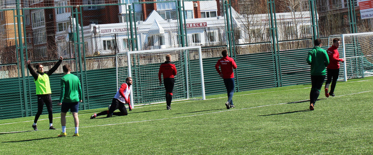 Но этого не произошло, КПРФ отоборонялась в меньшинстве и, похоже, облегченно вздохнула – еще 3 минуты и свисток. И под этот вздох, видимо, чуть расслабилась и оставила без присмотра Степанова возле углового флажка. А он изловчился принять мяч, выскочить на ударную позицию и пробить низом, под вратарем – 2:2! Казалось, что КПРФ теперь точно потеряет очки, но футболисты в красных футболках успели-таки разыграть хорошую комбинацию и вколотить победный мяч в сетку – 3:2! «Золотые» очки в красном кармане у КПРФ! Отличный матч! Ниже предлагаю несколько снимков с него. А также – с предыдущего поединка на новом приятном газоне, в котором лидер группы В, команда ТЭЦ-3, без особых проблем выиграла у «Белого Яра» со счетом 5:0. У белоярцев на этом матче не было голкипера, место в воротах занял полевой игрок, и, конечно, аутсайдеру тяжело было совладать с атаками ТЭЦ-3.