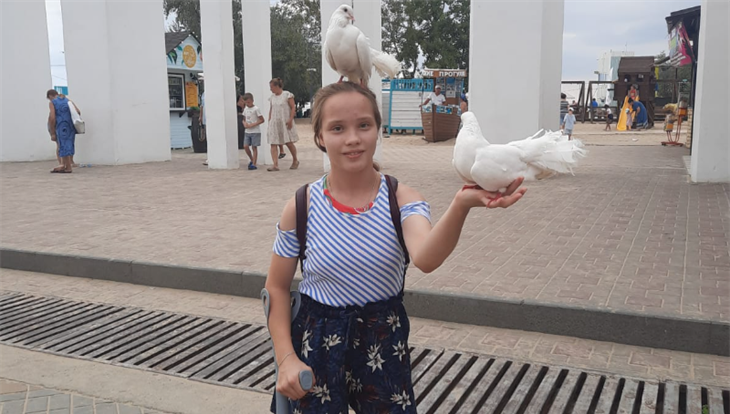 Оля живет в приемной семье в селе Парабель, у нее ДЦП. В этом году она заканчивает школу и готовится поступать и учиться на логопеда. Благодаря многочисленным реабилитациям и операциям Оля летом может ходить с одним костылем, но зимой все равно вынуждена пользоваться двумя.