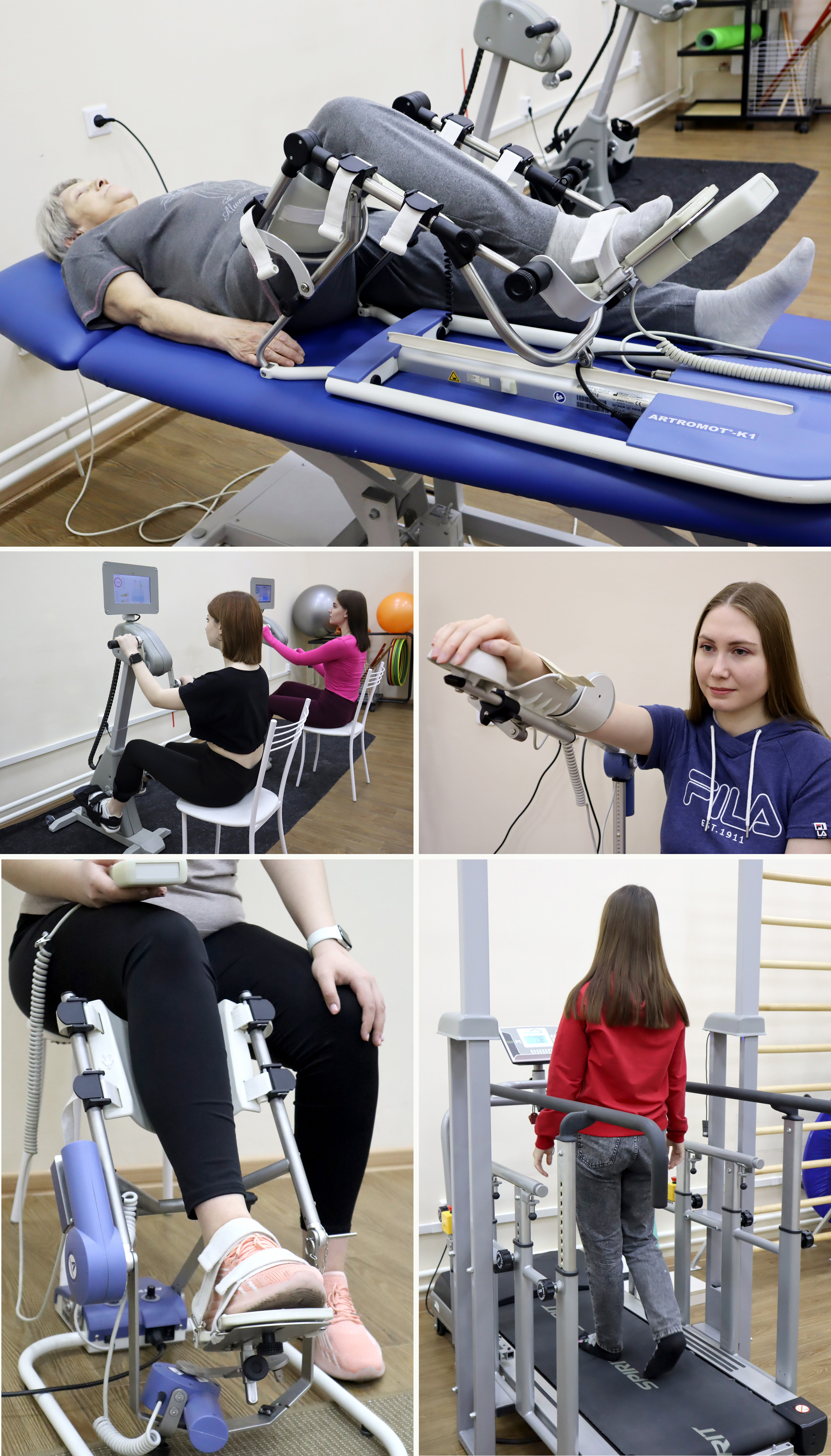 - Современное медикаментозное и немедикаментозное лечение, уникальные методики реабилитации: все виды инъекций, лечебно-медикаментозные блокады, классическая лечебная физкультура, кинезотерапия, в т.ч. роботизированная механотерапия, эрготерапия, ручной и аппаратный массаж, аппаратная физиотерапия (электромионейростимуляция, общая и локальная магнитотерапия, транскраниальная и периферическая магнитостимуляция, лазерная, ультразвуковая терапия, прессотерапия, ударно-волновая терапия, вакуумная терапия, радиочастотный лифтинг, криотерапия, сухая иммерсия, сухая углекислая ванна, озонотерапия), , иглорефлексотерапия, логопедическая и психологическая коррекция.