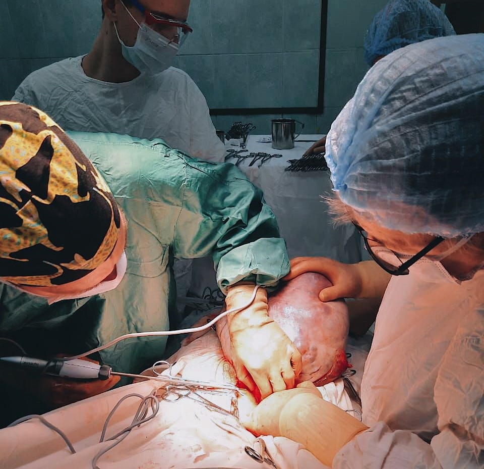 В итоге онкологи удалили опухоль размером 50*45*44 см, исходящая из правого яичника, кистозно-солидного строения, занимающая весь объем брюшной полости. Уточняется, что новообразование было удалено крайне аккуратно, без повреждения капсулы.
